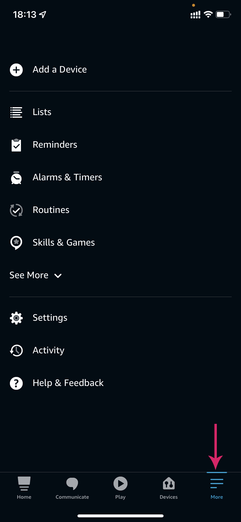 - Open Alexa app, tap on "More" then click on "Skills & games", on top